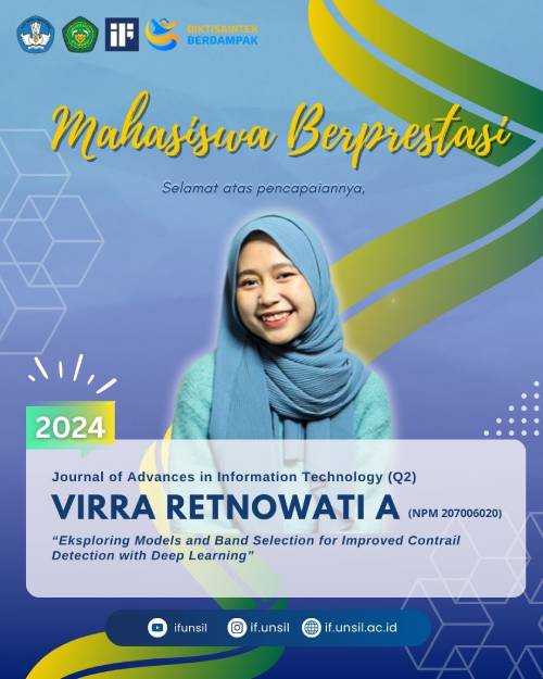 🎉 Selamat, Apresiasi tinggi kami berikan kepada Virra Retnowati A (207006020)Kami sangat bangga dan mengucapkan selamat atas pencapaiannya, telah berhasil mempublikasikan penelitian pada “Journal Advances in Information Technology” (Q2), dengan judul“Eksploring Models and Band Selection for Improved Contrail Detection with Deep Learning”. Tahun 2024.Teruslah berkarya dan inspirasikan banyak orang. Semoga prestasi ini menjadi inspirasi bagi...Read More